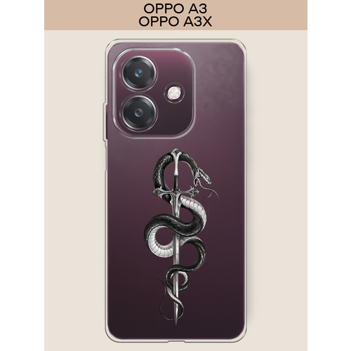 Силиконовый чехол "Змея с мечом чёрная" на Oppo A3/A3x / Оппо А3/A3x, прозрачный