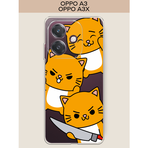 Чехол на Oppo A3/A3x / Оппо А3/A3x с принтом Опасные котики, прозрачный