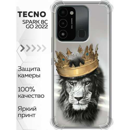 Дизайнерский силиконовый с усиленными углами чехол для Текно Спарк Го 2020 / Tecno Spark Go 2022 Лев с короной