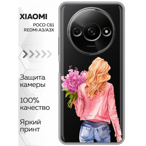 Чехол для Xiaomi Redmi A3 4G, A3x 4G, Poco C61 4G с принтом девушка с букетом (Ксиоми Редми А3 4G, А3x 4G, Поко С61 4G)