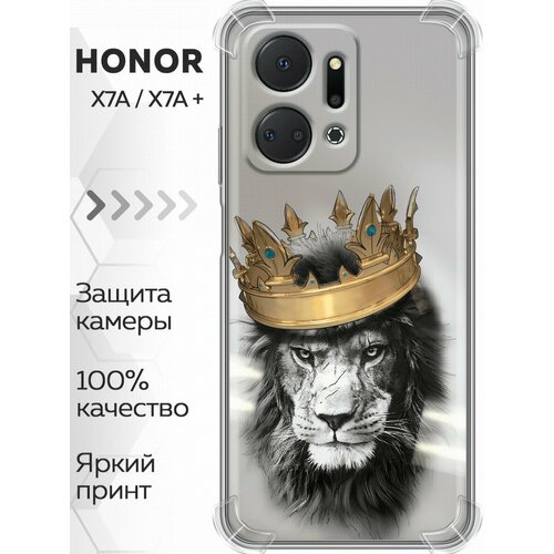Дизайнерский силиконовый с усиленными углами чехол для Хонор Х7а / Huawei Honor X7a Лев с короной