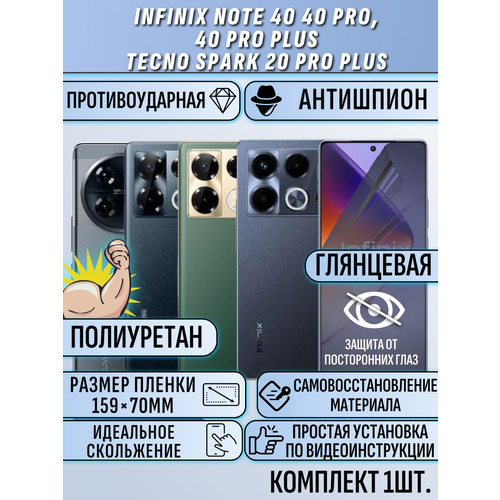 Гидрогелевая пленка для Infinix Note 40 40 Pro 40 Pro Plus Tecno Spark 20 Pro+ глянцевый антишпион под чехол