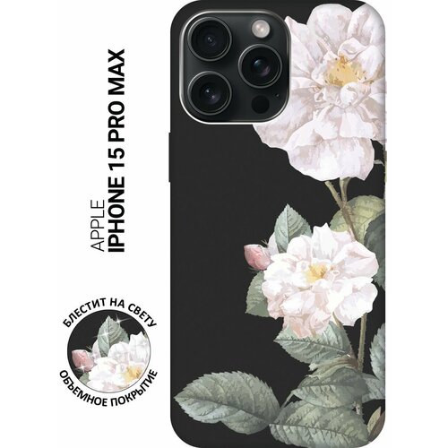 Силиконовый чехол на Apple iPhone 15 Pro Max / Эпл Айфон 15 Про Макс с рисунком "White Rose" Soft Touch черный