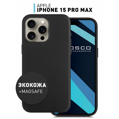 Чехол c магнитным кольцом Rosco для Apple iPhone 15 Pro Max (Айфон 15 Про Макс), защита камеры, экокожа