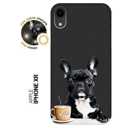 Силиконовый чехол на Apple iPhone XR с принтом "Французский бульдог и кофе" матовый черный