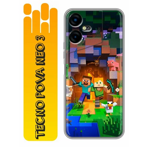 Чехол для Tecno Pova Neo 3 с принтом Minecraft Майнкрафт (Техно Пова Нео 3)