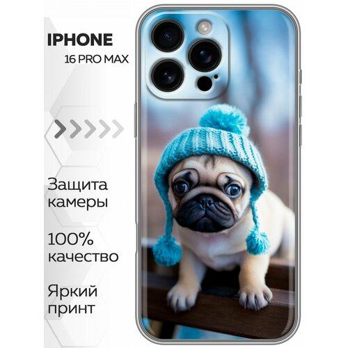 Чехол для Iphone 16 Pro Max с принтом Щенок мопса в шарке (Айфон 16 Про Макс)
