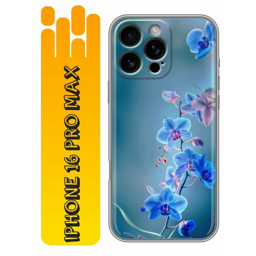 Чехол для Iphone 16 Pro Max с принтом Голубые цветы (Айфон 16 Про Макс)