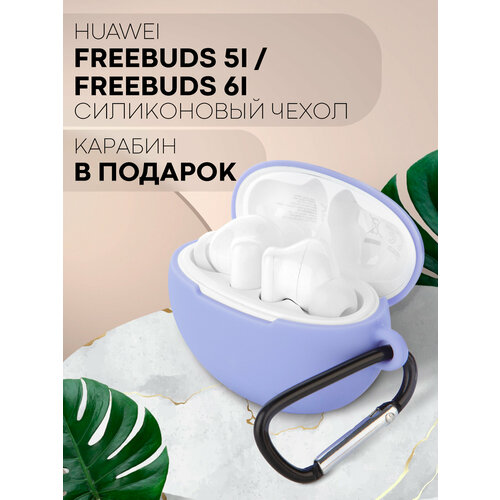 Силиконовый чехол для наушников Huawei FreeBuds 4i (Хуавей ФриБадс 4и) покрытие Soft-touch, карабин и полупрозрачная выемка для индикатора