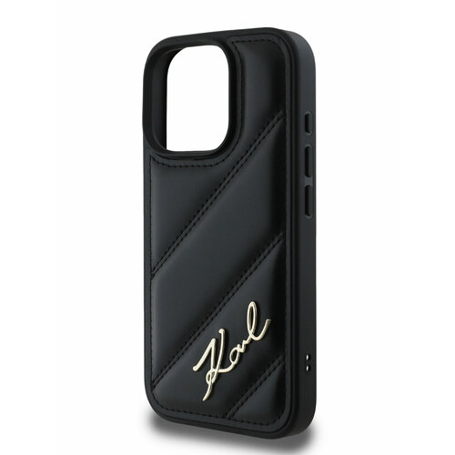 Lagerfeld для iPhone 16 Pro Max чехол PU Quilted Signature metal logo Hard Black