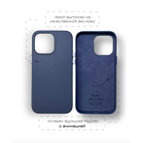 Чехол кожаный для iPhone 13 Pro, Leather Case, с поддержкой беспроводной зарядки, цвет темно - синий