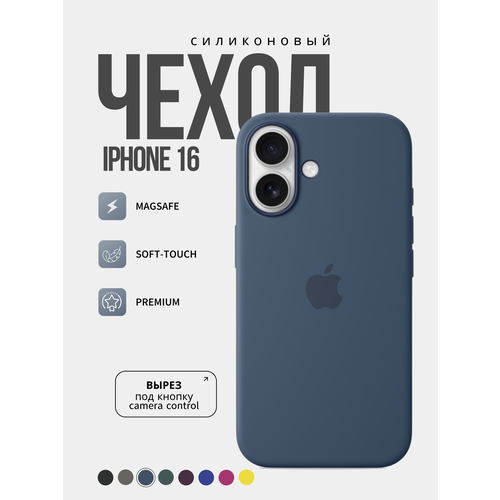 Чехол силиконовый для iPhone 16, с поддержкой беспроводной зарядки, Soft touch