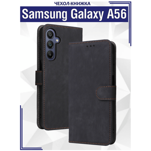 Чехол книжка для Samsung Galaxy A56 c магнитной застежкой / Самсунг Галакси А56 c отделением под карты (черная)