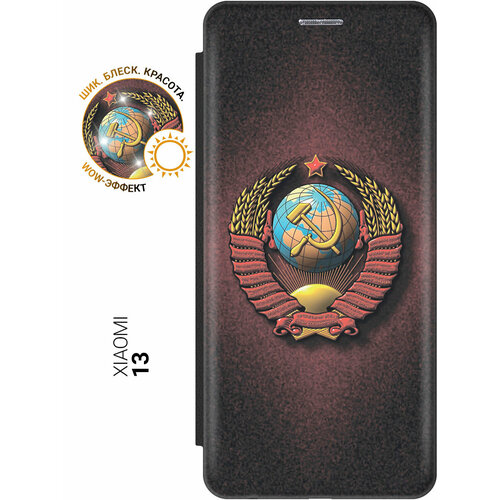 Чехол-книжка на Xiaomi 13, Сяоми 13 c принтом "Серп и молот" черный