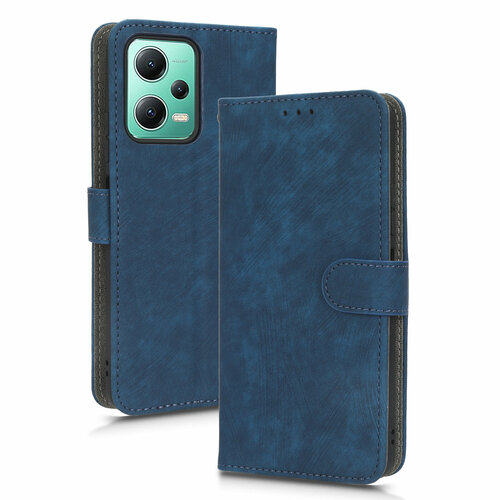 Чехол книжка для Xiaomi Poco X5 (5G), Redmi Note 12 (5G) c магнитной застежкой / Сяоми Поко Х5, Редми Нот 12 5G c отделением под карты (синяя)