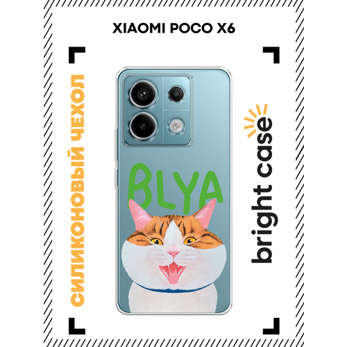 Чехол на Xiaomi Poco X6 / Поко Х6 с принтом Испуганный котик с надписью, прозрачный