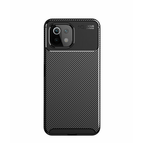 Чехол панель-бампер MyPads для Xiaomi Mi 11 Lite (NFC) / 11 Lite 5G NE из прочного силикона с матовой отделкой «под карбон» черная