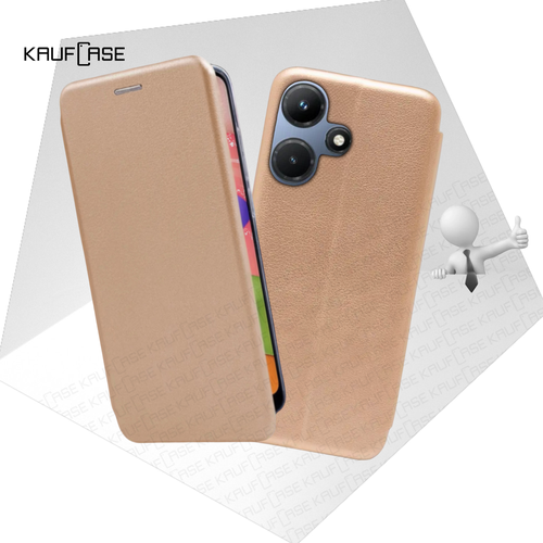Чехол книжка для телефона Infinix Hot 30i (X669D) (6.56"), золото. Текстура под кожу