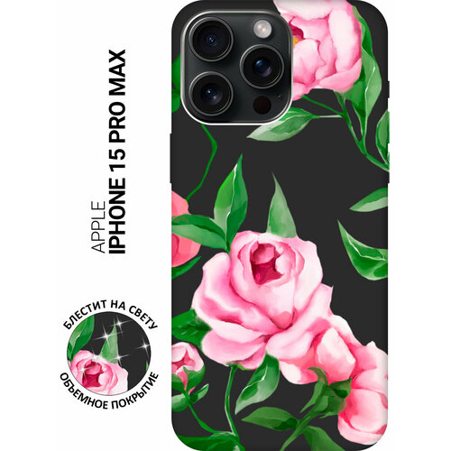 Силиконовый чехол на Apple iPhone 15 Pro Max / Эпл Айфон 15 Про Макс с рисунком "Amazing Peonies" Soft Touch черный