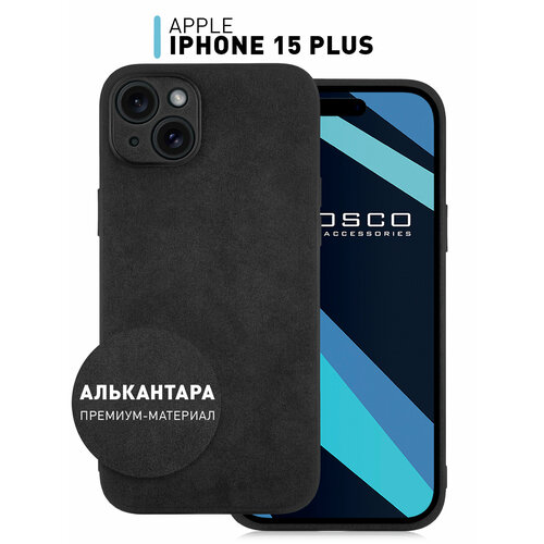 Люксовый замшевый чехол Alcantara на Apple iPhone 15 Plus (Айфон 15 Плюс), бренд Rosco, бархатистый