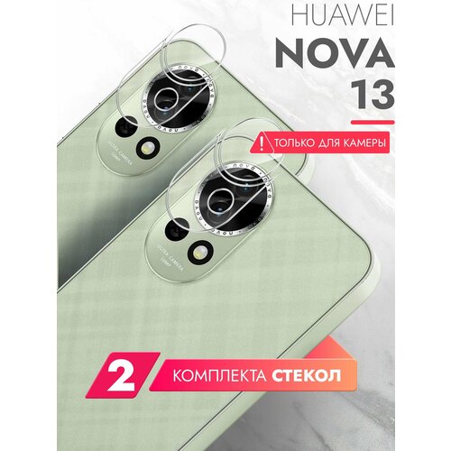 Защитное стекло на Камеру для Huawei Nova 13 , 2 штуки, (гибридное: пленка+стекловолокно), прозрачное силиконовая клеевая основа тонкое Hybrid Glass, Brozo
