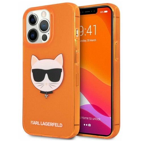 Lagerfeld для iPhone 13 Pro Max чехол TPU FLUO Choupette Hard Transp Orange