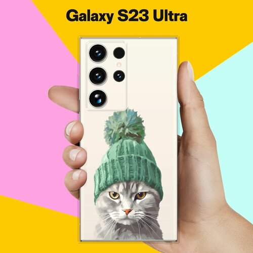 Силиконовый чехол на Samsung Galaxy S23 Ultra Серый Кот / для Самсунг Галакси С23 Ультра
