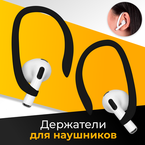 Держатель для блютуз наушников Apple AirPods / Силиконовое защитное крепление для беспроводных наушников Эпл Аирподс на уши / Черный