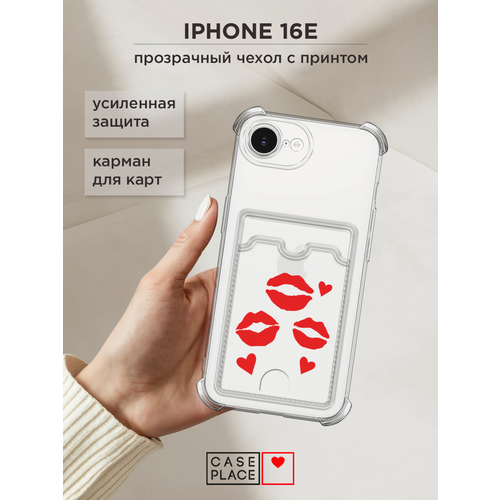Чехол на Apple iPhone 16e (Айфон 16е) с картой и принтом С поцелуями