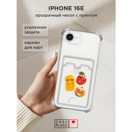 Чехол на Apple iPhone 16e (Айфон 16е) с картой и принтом Овощи с лицами из ТикТока