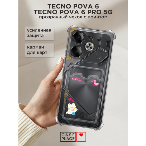Чехол на Tecno Pova 6/6 Pro 5G (Текно Пова 6/6 Про) с картой и принтом Корейский котик