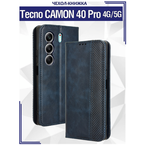 Чехол книжка для Tecno Camon 40 Pro (4G)/ Camon 40 Pro (5G) с магнитом и отделением под карты / Техно Камон 40 Про (синяя)