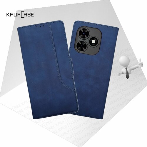Чехол книжка с карманом кошельком для вашего смартфона Tecno Spark 20 /Spark 20C (BG7n) (6.6"), темно-синий. Матовая текстура под кожу, дополнительный карман на крышке чехла, отделения для карт и купюр