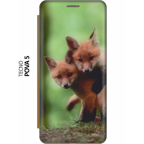 Чехол-книжка Два лисенка на Tecno Pova 5 / Техно пова 5 золотой
