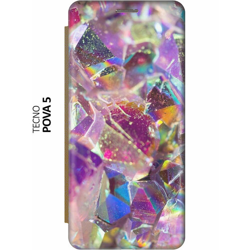 Чехол-книжка Розовые кристаллы на Tecno Pova 5 / Техно пова 5 золотой