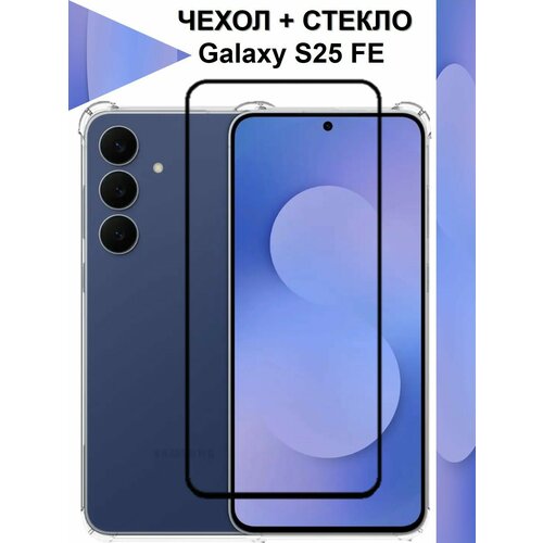 Комплект 2 в 1: Чехол с защитой камеры и углов + полноэкранное стекло для Samsung Galaxy S25 FE / Галакси С25 ФЕ