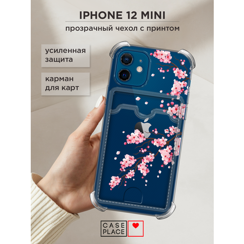 Чехол на Apple iPhone 12 mini (Айфон 12 Мини) с картой и принтом "Розовая ветка сакуры"