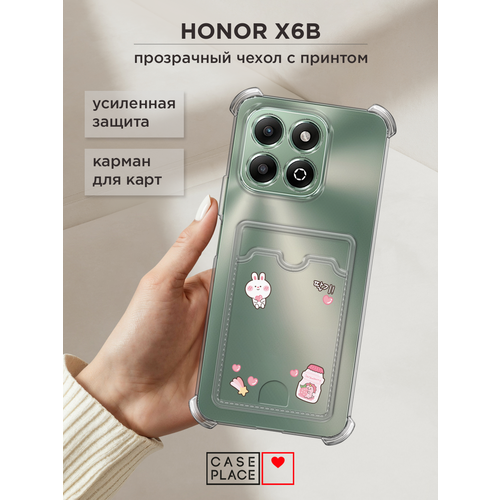 Чехол на Honor X6b (Хонор X6b) с картой и принтом Милый корейский кролик
