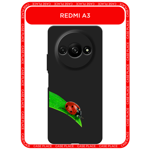 Черный матовый чехол на Xiaomi Redmi A3/A3x/Poco C61 / Сяоми Редми А3/A3x/Поко С61 с принтом На счастье