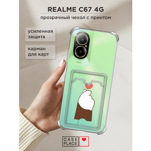 Чехол на Realme C67 4G (Реалми C67 4G) с картой и принтом Кот делает жест сердечком