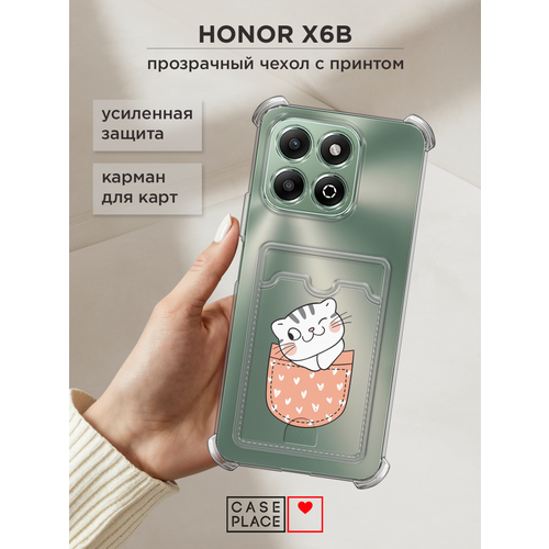 Чехол на Honor X6b (Хонор X6b) с картой и принтом Котик подмигивает в кармане
