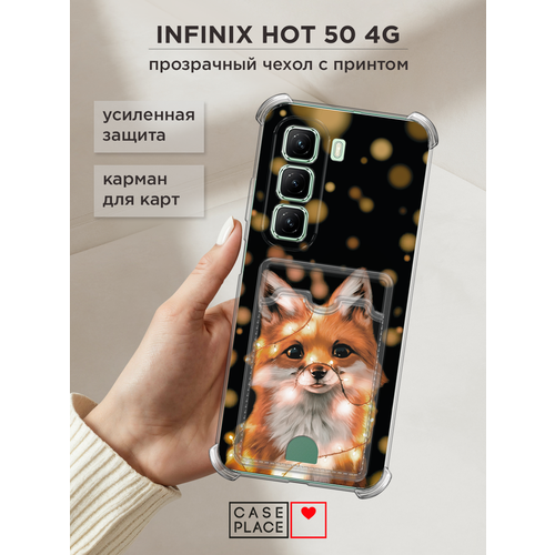 Чехол на Infinix Hot 50 4G (Инфиникс Хот 50 4G) с картой и принтом Лиса
