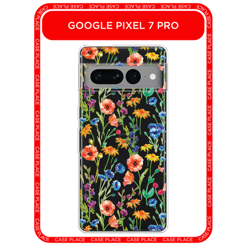 Чехол на Google Pixel 7 Pro / Гугл Пиксель 7 Про с принтом Маки и васильки фон, прозрачный