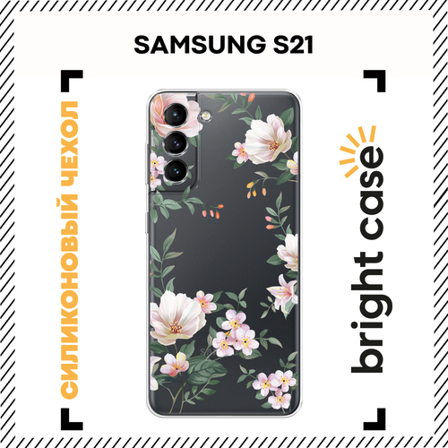 Чехол на Samsung Galaxy S21 / Самсунг S21 с принтом С цветами белыми, прозрачный
