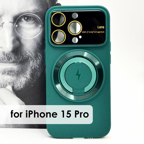 Чехол для iphone 15 Pro с защитой камеры , soft touch, закрытый низ, цвет темно-зеленый