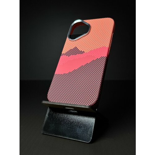 Чехол для Айфон 16 с МагСейф из Кевлара / чехол iPhone 16 с MagSafe Kevlar LUXO Life+, красная гора, карбоновый
