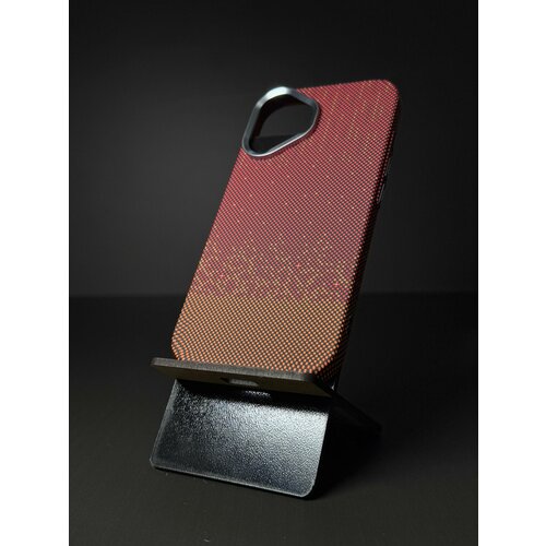 Чехол Айфон 16 с МагСейф Кевлар / чехол iPhone 16 с MagSafe Kevlar LUXO Life+, красный, с оранжевым узором, карбоновый