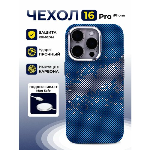 Чехол на айфон 16 про карбоновый Magsafe/iPhone 16 Pro с защитой камеры