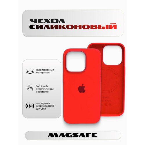 Чехол силиконовый для iPhone 14 Pro, с поддержкой беспроводной зарядки, Soft touch, цвет красный