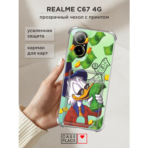 Чехол на Realme C67 4G (Реалми C67 4G) с картой и принтом Скрудж Макдак